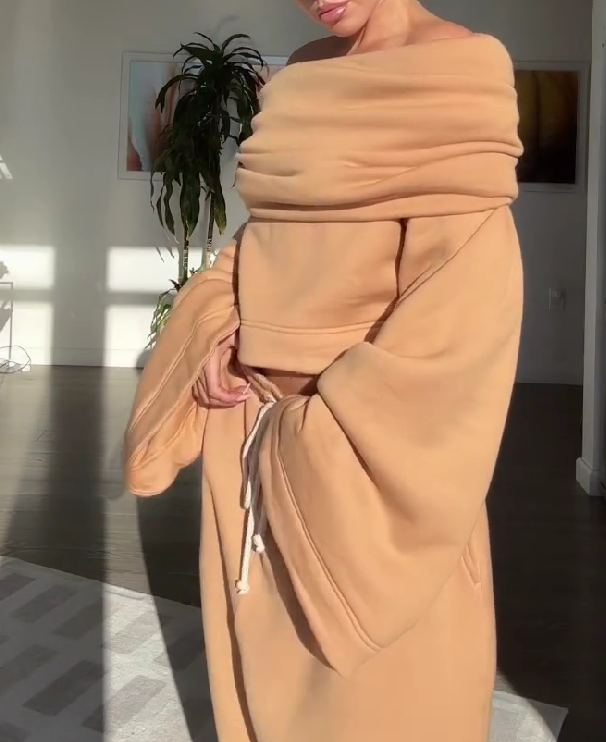 Cloud Teddy Long Sleeves Top Super Jogging Pants 2-Piece Set